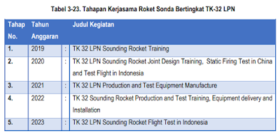 Dalam pelaksanaan kegiatan program kerjasama pengembangan roket sonda bertingkat TK-32 LPN dibagi atas 5 tahapan yang dimulai sejak 2019 sampai 2023.
