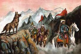 asena was the she-wolf that gave birth to the Turks and lead them out of the valley thus helping to established the first Göktürks empire as explained in Ergenekon legend