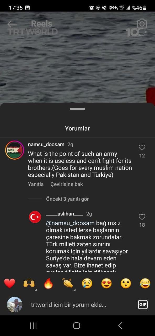 bunlar hadlerine açmışlarFilistinlilerin TRT world instagram hesabında 100. Yıl donanma geçit töreninde yaptıkları yorumlar.