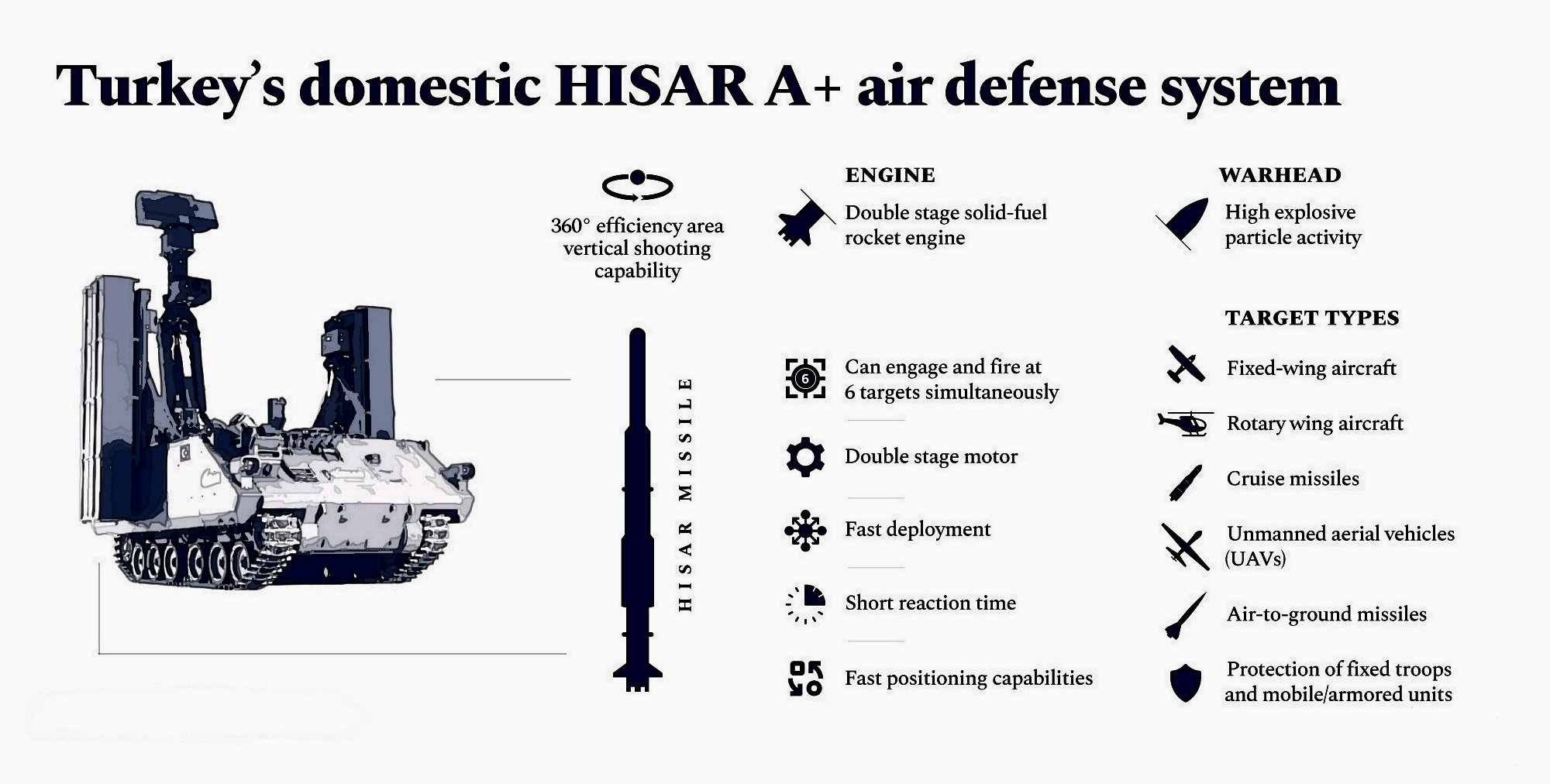 4 launcher vehicle. Each vehicle has 6 ready to fire Siper/Hisar-U missiles.6 missiles in 4 launchers?? Or you mean 2 missiles on each launcher? Means 8.