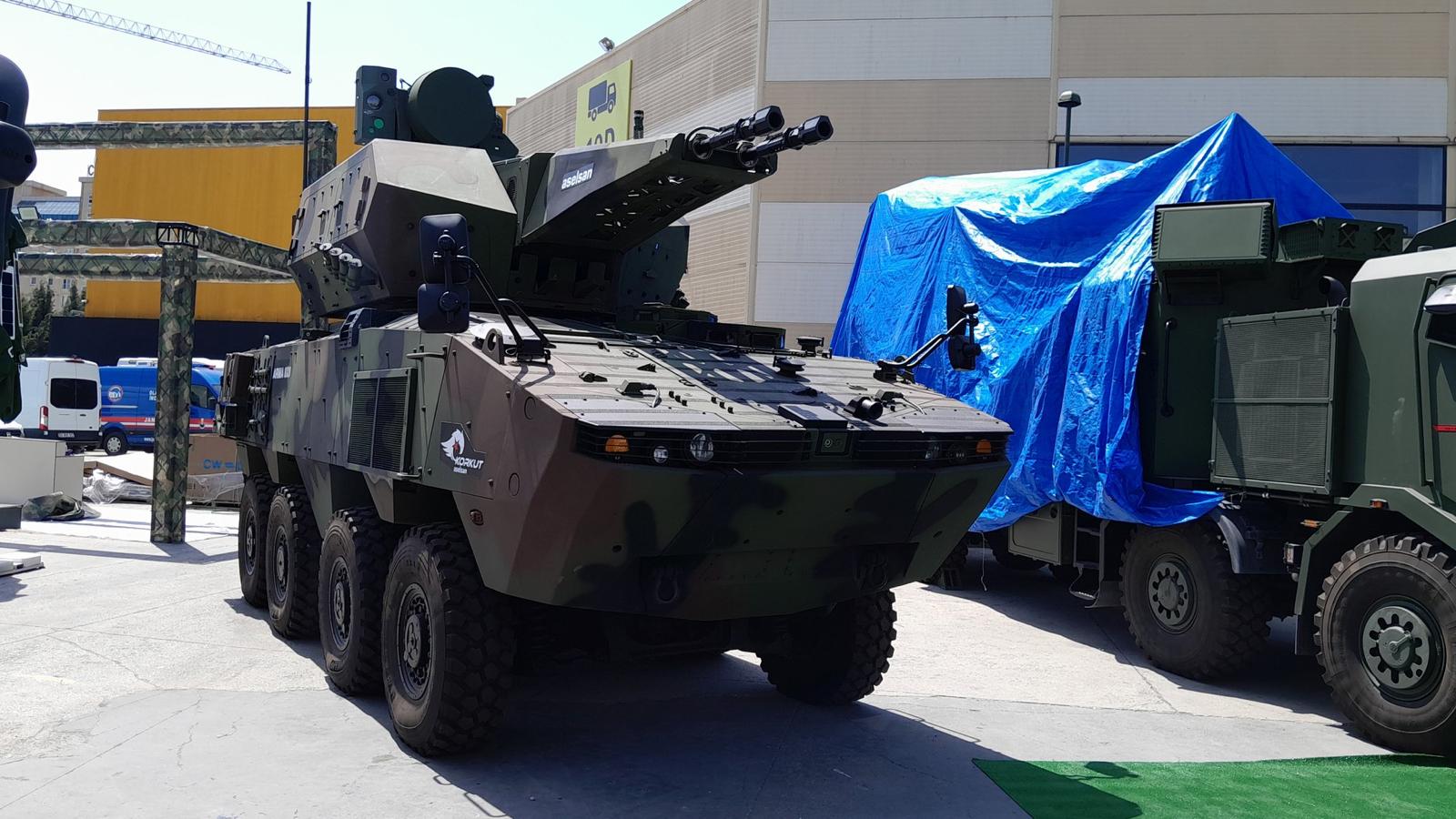 Roketsan Burç Short Range AD System. 4 fixed AESA radars, 20mm Gun, 8 Sungurs on 2 pods on the sides, built on top of FNSS İzci 8X8. And they already made the first firing test for the gun. Looks like another small UAV/kamikaze drone killer.