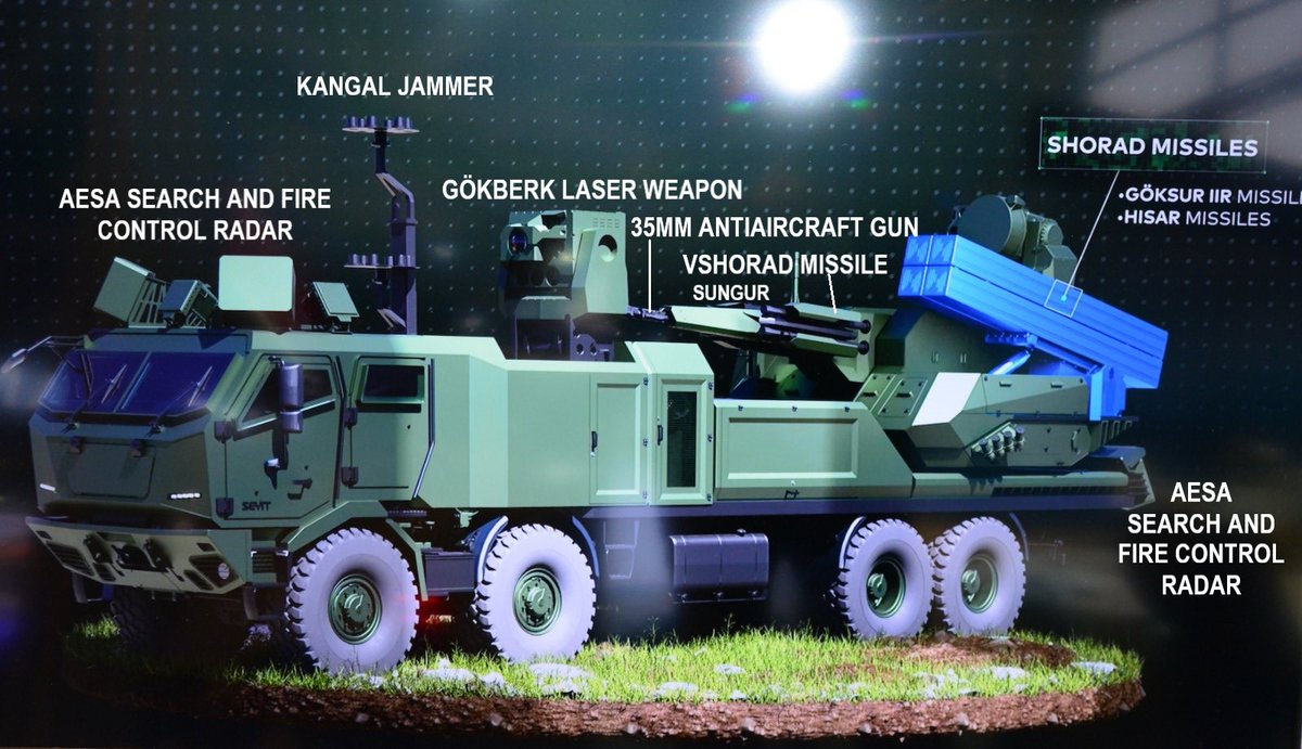 Another big flaw is the fact that missiles are connected to turret and pointed in the same direction together. If multiple threats were to engage from different directions you would be unable to fire at all of them at once despite having separate systems for all. If you knew enemy could come from a limited area it could still work but otherwise you would be easily taken out by multiple small drones. So I think they should at least separate the hisar / bozdoğan launchers to a different position. I think going from this idea, you could add sungur or aesa radar to existing korkut systems instead as an upgrade, and have hisar and jammers / laser as separate vehicle. Otherwise to use Gürz effectively, you would need 2-3 of them at once.