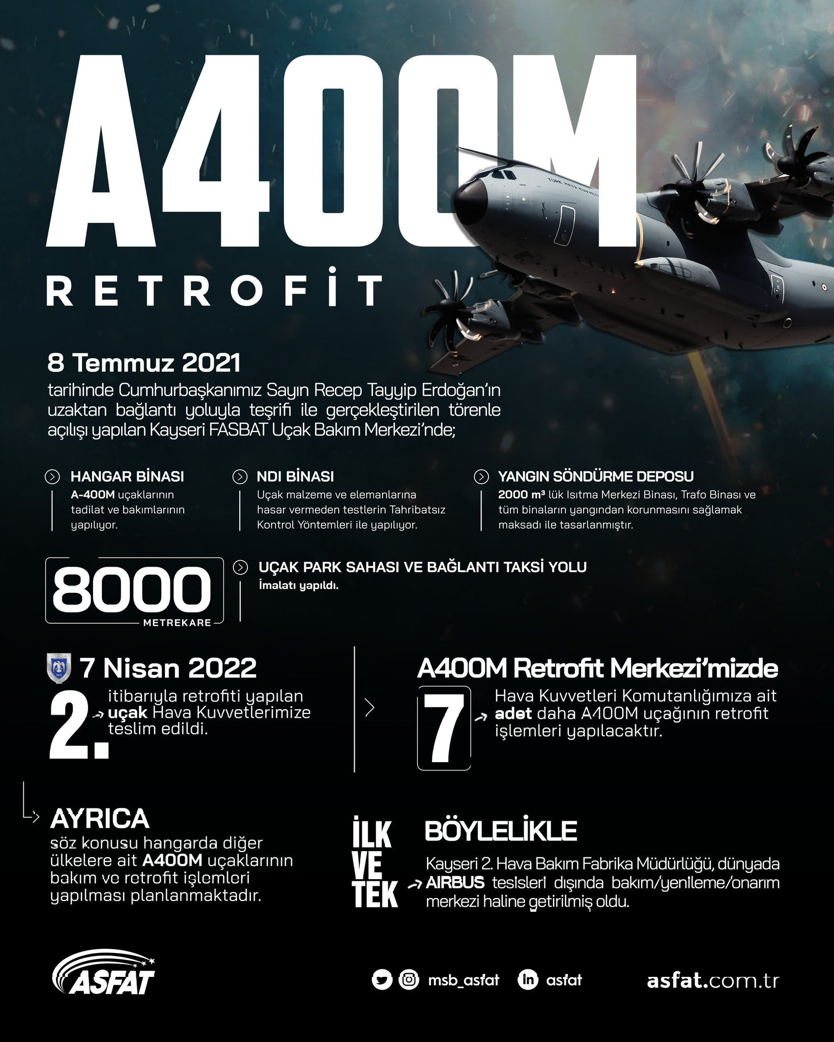 As ASFAT, we delivered the second A400M aircraft, which was retrofitted at our FASBAT Retrofit Center in Kayseri, to our Air Force Command on time.