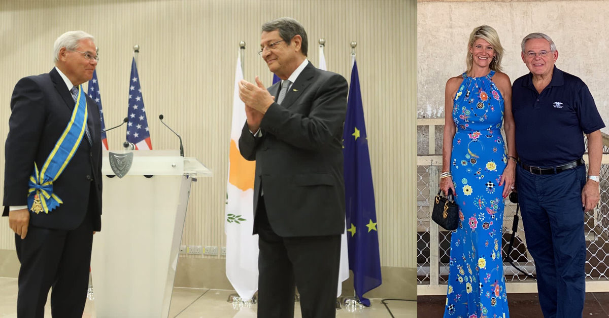 "The Senator met with Nikos Anastasiadis where the latter honored him with the Grand Cross of the Order of Makarios III. The couple had moved to Athens before visiting Cyprus. The 54-year-old businesswoman accompanied the chairman of the Senate Foreign Affairs and Defense Committee to the Athens city hall where the mayor Kostas Bakoyannis awarded him the Medal of the City of Athens.