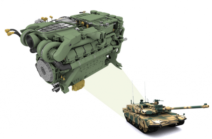 Korean MBT power pack (SNT EST15K automatic transmission + Doosan DV27K diesel engine):