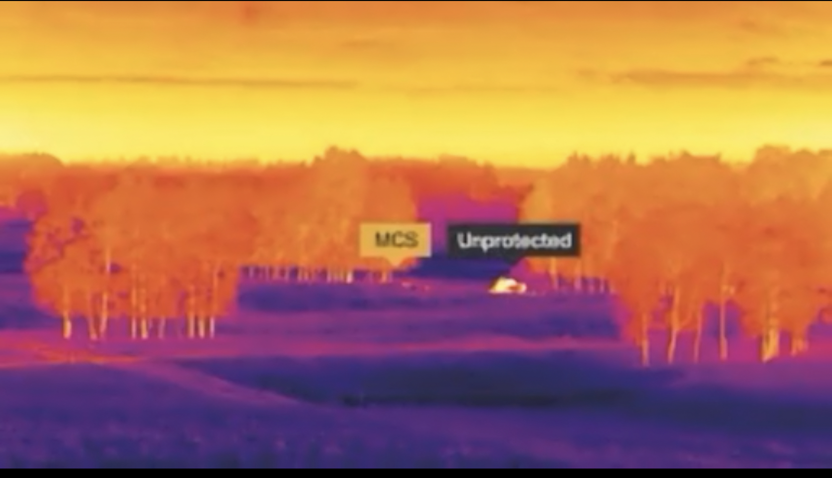 (MCS stands for 'mobile camouflage system' for vehicles. You can see it’s effectiveness compared to unprotected vehicle)