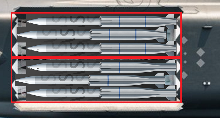 The Astr-1,2,3 AAMs have same length 3.84m. But unfortunately due to big fins of Astr-1, even staggering doesn't help to fit 3 AAMs/bay, total of 6.