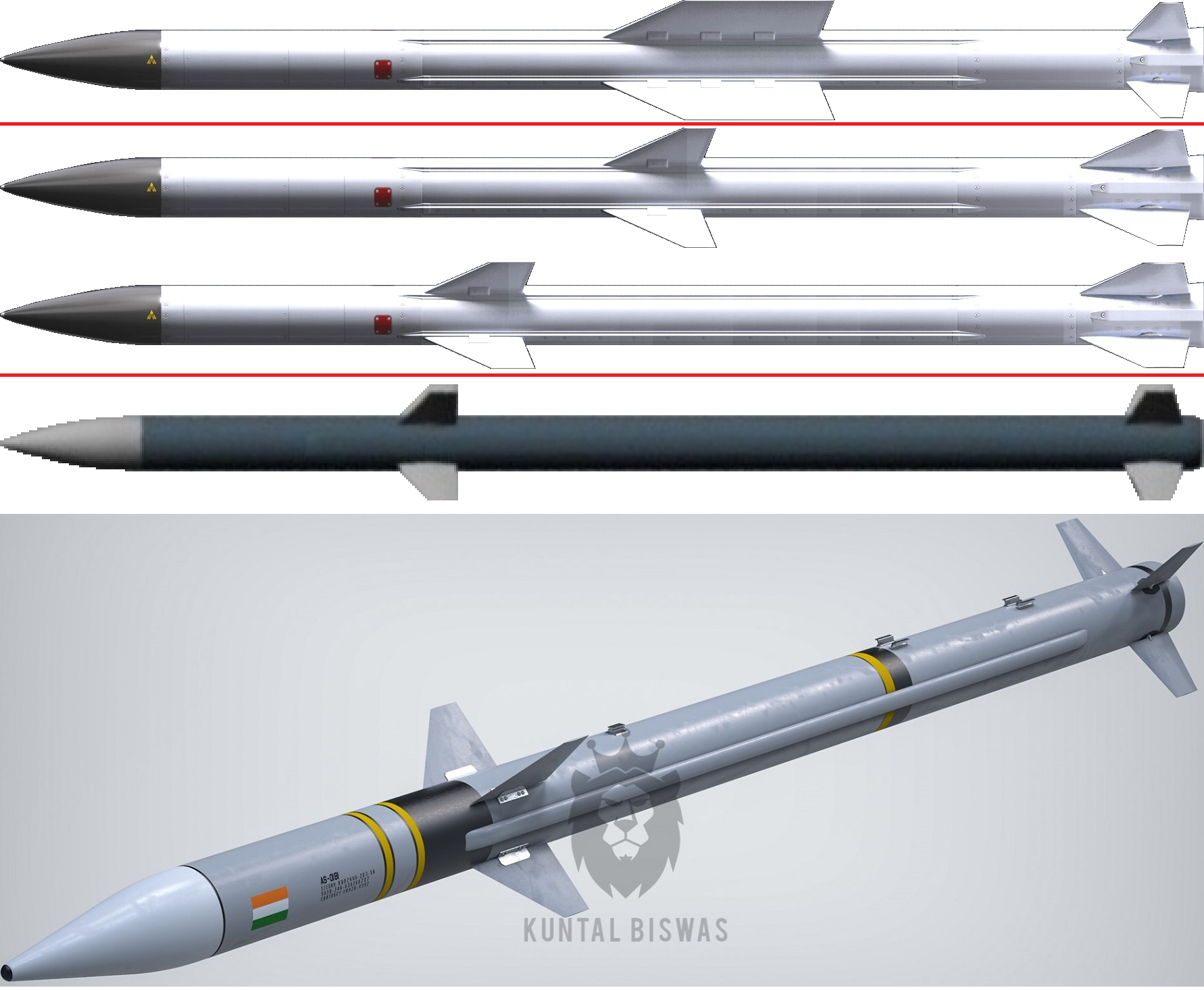 I took the CAD of Astr-2 big-fin by artist "Akela freedom" & edited in Paint to match short-fin version made by artist "Kuntal Biswas" which is also identical to AIM-120-D. So the forward fixed fin has been shortened & shifted forward & rear fin leading edge more swept back, that's all, simple quick edit.