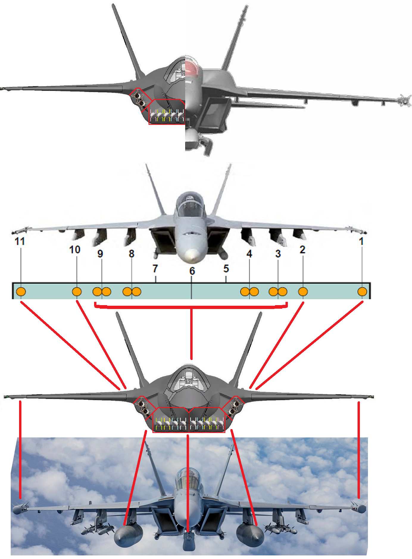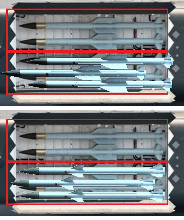 Now we can see the comparison more clear & precise, 4 & 6 big-fin AAMs vs 6 short-fin AAMs in the outine of official dimension of IWB. Unfortunately an updated CAD is not released yet by any artist or DoD.