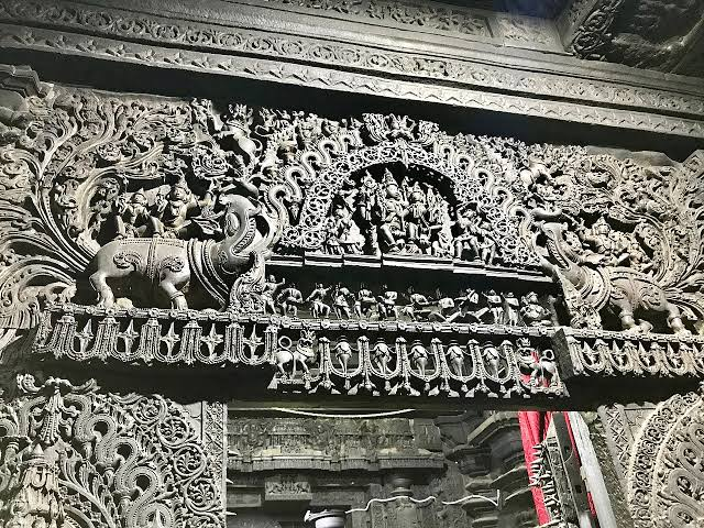 12th century Sanatan Temple, dedicated to Bhagwan Shiv. This is Hoysaleshwara temple, The Dwarapalakas, Karnataka