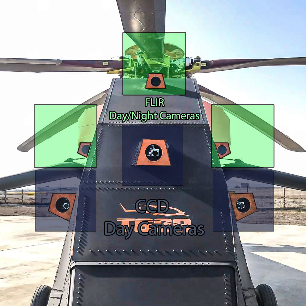 I reckon the cameras are configured in this way - unless the unmanned helicopter is operated in tandem by two pilots - with each 3 sets of cameras being utilised by a single pilot