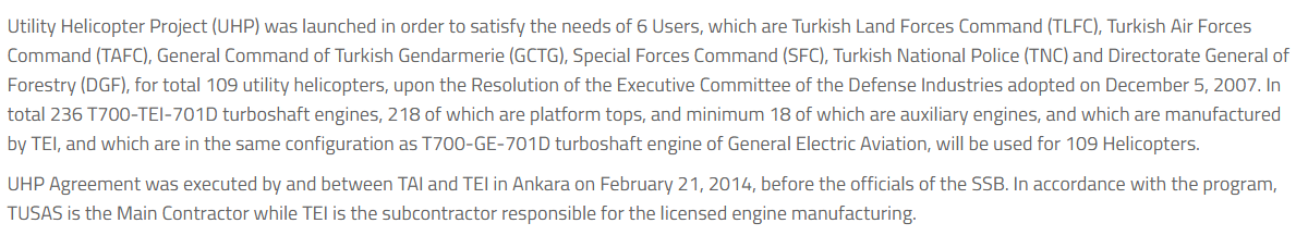 - UHP Agreement was executed by and between TAI and TEI in Ankara on February 21, 2014,