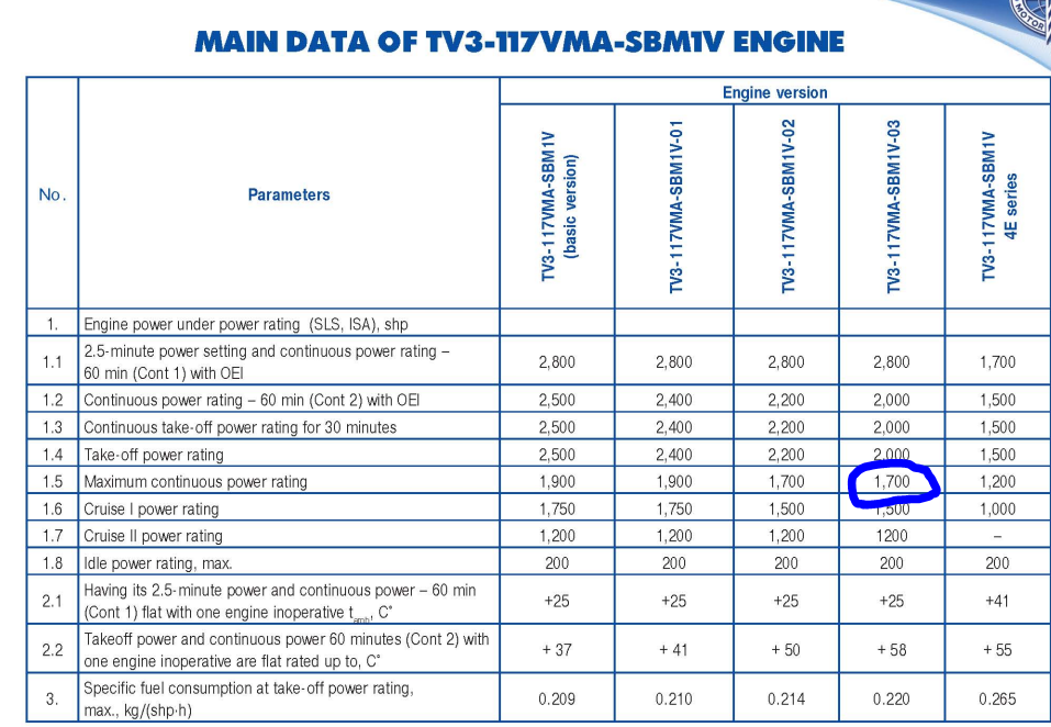 Even though the Motor Sich Engine seems more powerful, the Continuous power is similar.