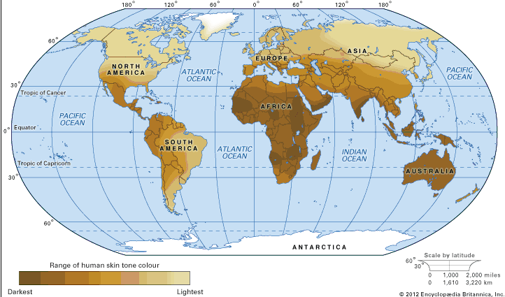 Indonesian who live in town for hundreds of years have lighter skin tone than people living in village with farming activities since their activity is primarily inside the building.