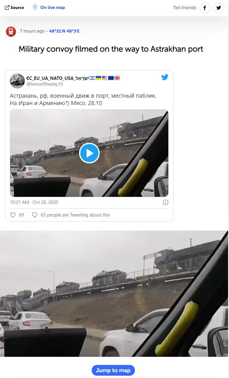 if we get the Lachin corridor in 3 days it wont matter anymore.Possibly on the way to a Iranian port to be further transferred to Armenia.