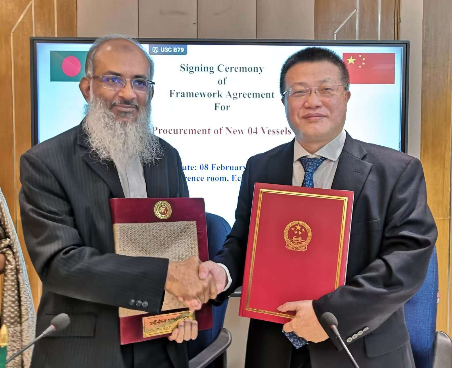 Bangladesh and China today (8 February) signed a framework agreement worth RMB1.67 billion (around Tk2,486.31 crore) to procure four vessels for the Bangladesh Shipping Corporation (BSC), aiming to strengthen maritime transport capacity and energy security.