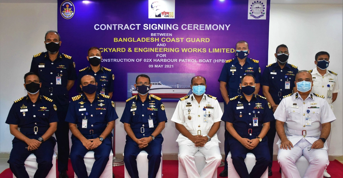 Bangladesh Coast Guard and Dockyard and Engineering Works Ltd, Narayanganj, signed an agreement for supplying two harbour patrol boats in the 2021-2022 fiscal year under the revenue budget.