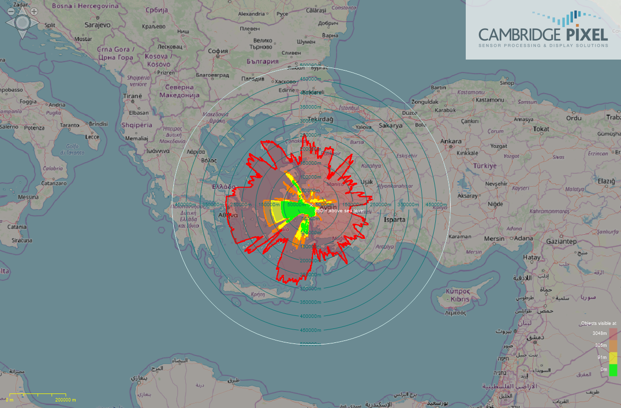 - short range radar, it typically shows its very small overlap at low altitudes, due to the Greek islands right in front of it