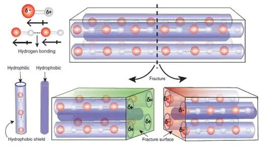 Due to the unique property of piezoelectric molecular crystals, the broken pieces of the component acquire electrical charges at the crack junction and the damaged parts attract each other for precise autonomous repair.