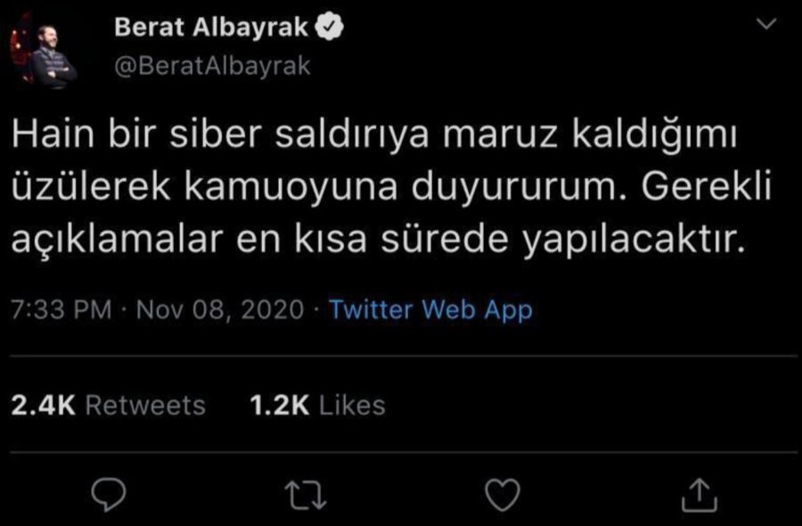 This one is completely fake, his account is closed. It is impossible to be hacked and stay silent if you are a minister. No official statement about hacking for 4 hrs. And no recovering attempt? This whole process is complete mess.. May be RTE is still thinking and Mr. Albayrak acted on his own