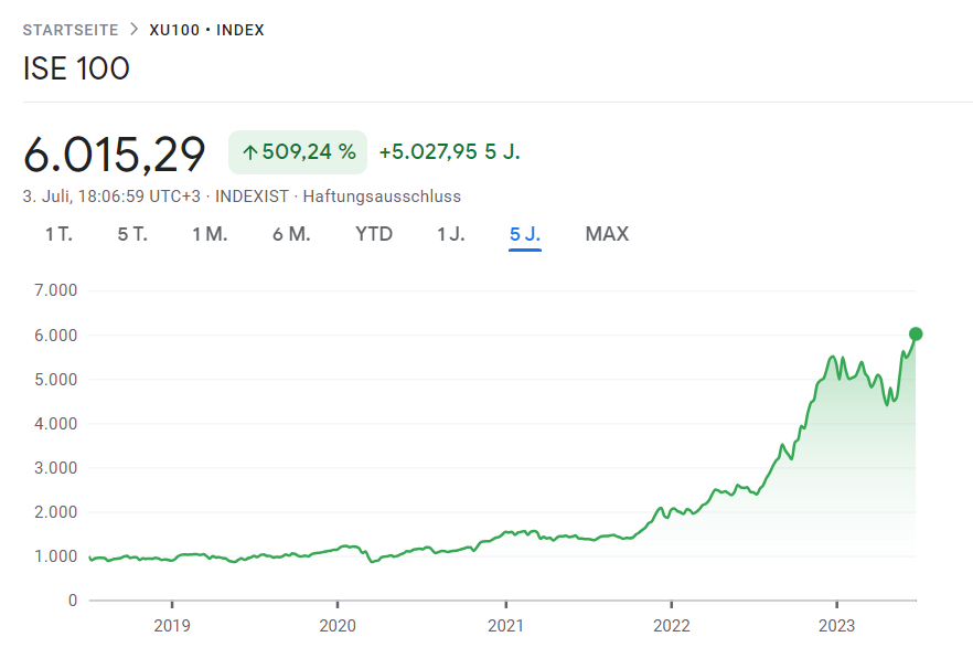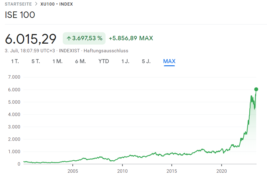 Now do that but in a stable currency, you can choose any one of them; dollars, euros, yens, yuans, whatever. What's Bors Istanbul's yearly performance based on its value in a currency that isn't nosediving? -30%, worst in the whole wide world. (well maybe not worse than Zimbabwe's second city's stock market, but everybody knows what I mean).