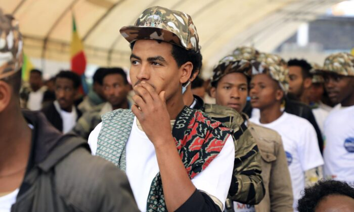 Youth joining the Ethiopian National Defense Force are escorted to Meskel Square in the capital Addis Ababa, Ethiopia on July 27, 2021. (AP Photo/File)