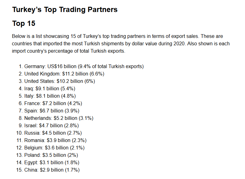 Again, trade you have with Europe dwarfs the rest, which is true. However, have you asked yourself which party gains the most from this deal? The answer is Turkey! Turkey is dependent on exports to EU but the EU itself isnt dependent on Turkey! The EU can find many other trade sources other than Turkey! If the EU did act as you said, the customs union would have been updated long ago tbhTrade we have with Europe dwarfs Africa and the gulf and the potential is much greater. Friendship with poor insignificant countries isn't a priority for me. (no offense to Albania)