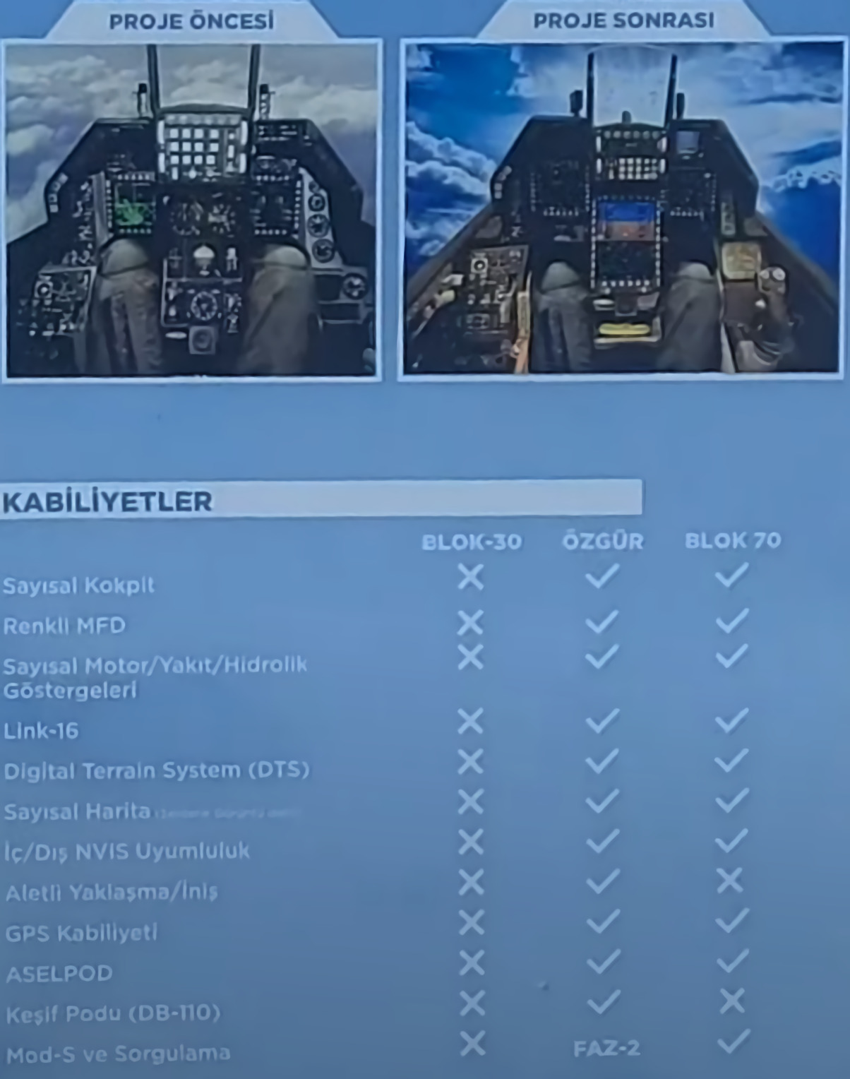 -Serial modernization started in the F16 Özgür project. Aselsan product HMD system will be used in Özgür aircraft