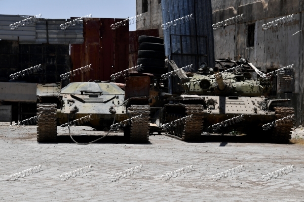Next we see two T-72s that couldn't be more different in the task they fulfill. On the left, a T-72 'Ural' that has been converted into a towing vehicle to haul AFVs that can't move on their own around the facility – on the right, a Syrian T-72AV deprived of all its Kontakt-1 explosive reactive armour. This T-72AV is likely operated by a training unit, with the explosive reactive armour removed for use with other tanks serving on the frontline which obviously need it more direly.