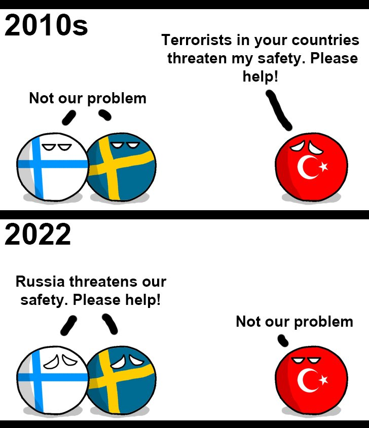Since the enemy isnt the mighty US, it seems that Erdogan is really set up on taking concessions from Finland and Sweden; unlike with the case of Pastor Brunson (or whatever he was called)