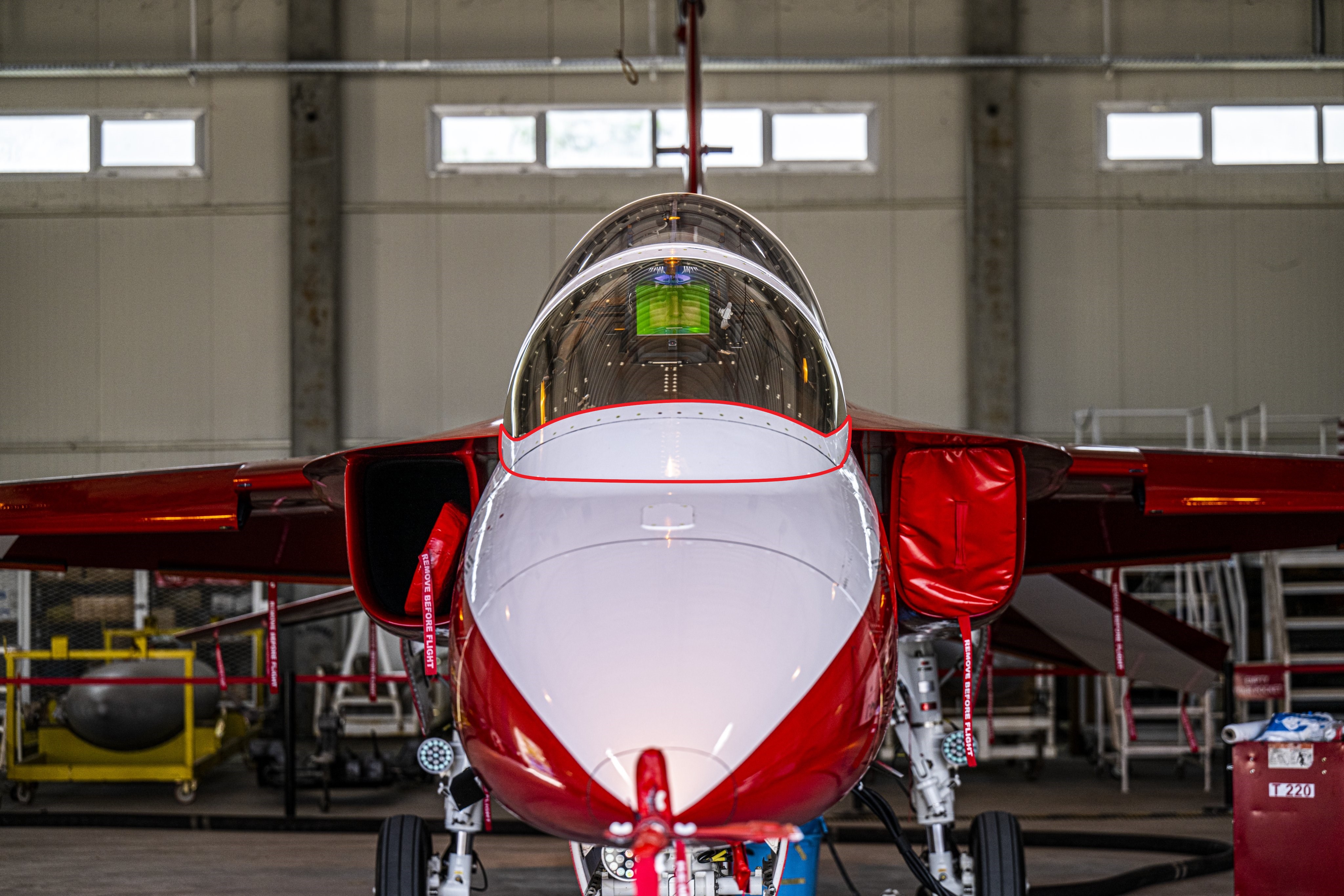 It'd look much nicer if the canopy extended and was flush with the fuselage in the area highlighted. I don't know if we can't make it that way (due to technological hurdles) or if it was a design choice but it does take away from it both aesthetically and in terms of craftsmanship appearance comparing with peer competitors (T-7, JL-10, T-50 for comparison; theirs also protruding outwards much more than Hürjet, kind of mimicing a bubble canopy).