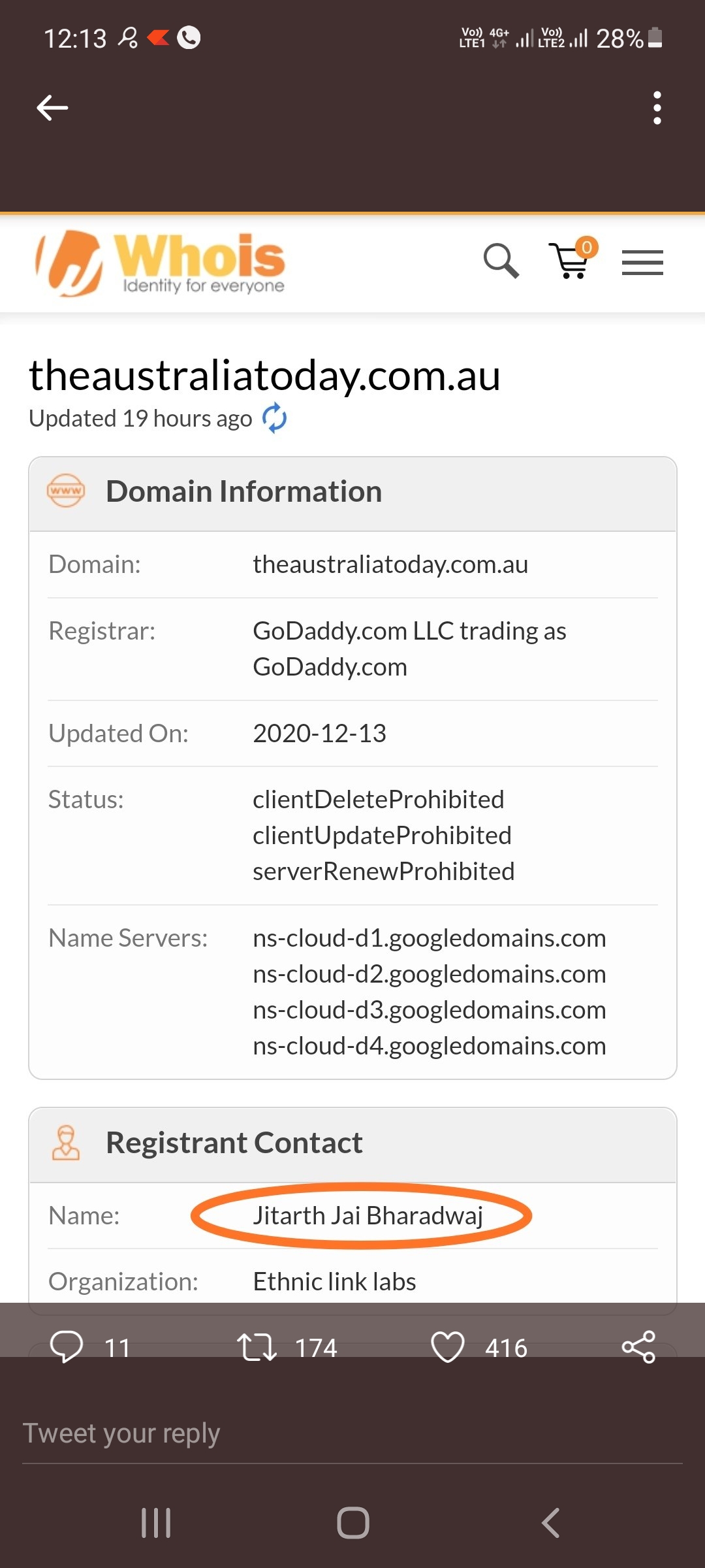 Both the "Daily Guardian" and "Australia Today" are BJP IT cell decoy sites
