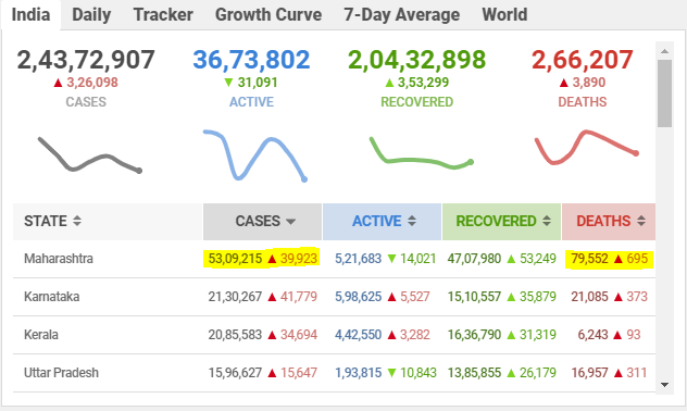 This what NDTV says about Maharashtra 5 million positive sofar 79000 dead officially and god knows how many unofficially and CM is doing an awesome job...