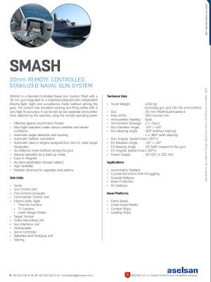 10 Oktober 2020 Aselsan SMASH (MUHAFIZ in Turkey) 30mm RCWS (photo : Aselsan) ASELSAN announced that it signed a new export agreement with I...