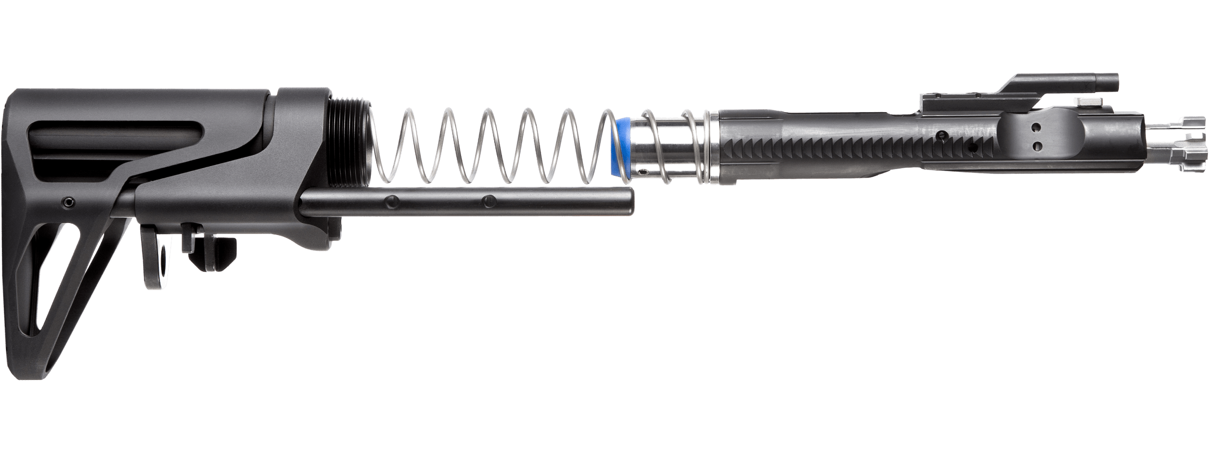 Büyük ihtimalle AR-18 deki gibi Bolt üstüne üste iki yay konulmuş. Bu sayede dipçiğin mekanizmayla bir bağlantısı yok.