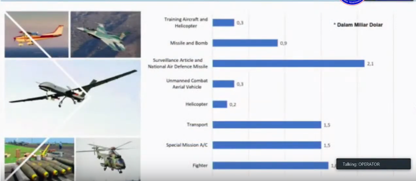 The latest order is quite match with these presentation. T 50 Golden Eagle is ordered at 400 million USD though, 100 million USD more than what has been given by Bappenas (Training Aircraft), so SMI add the figure a bit, maybe due to minimum plane needed to get TOT scheme from KAI.