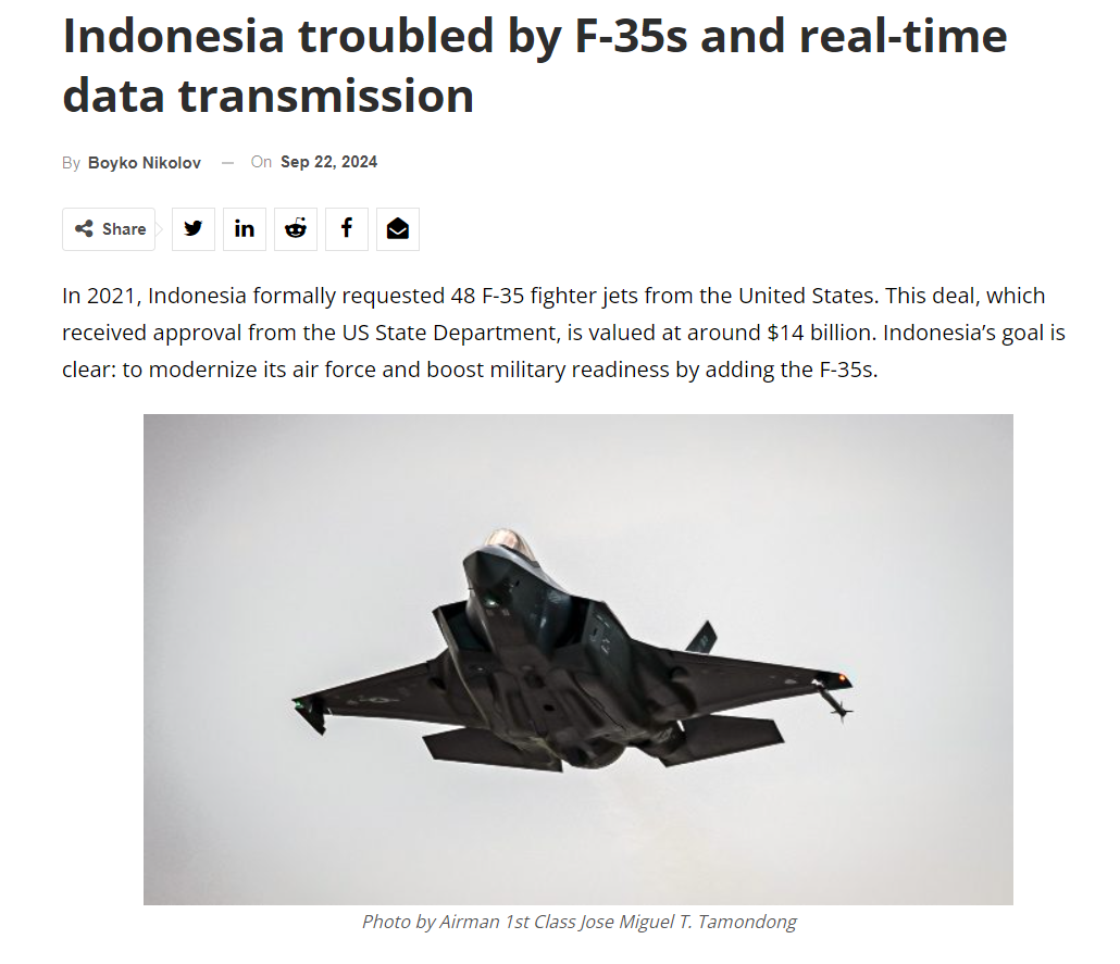 Doesn't sound good for China if Indonesia get F35.