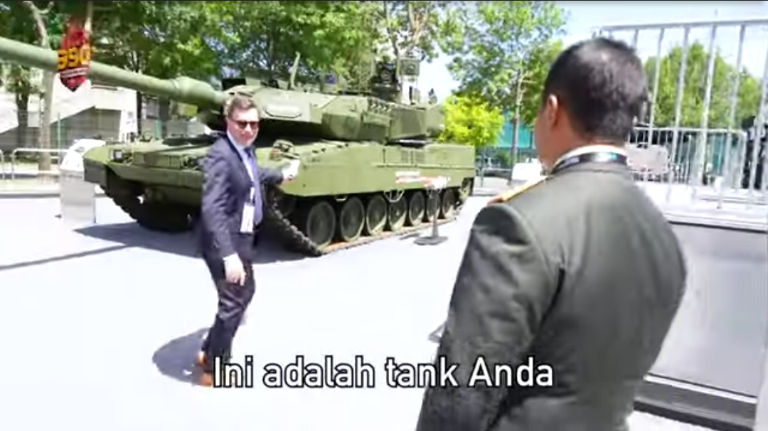 In the video an official showing Indonesia flag on the Leopard 2A7 with Trophy APS to TNI Chief while saying: "Indonesia!....and soon Indonesia!"