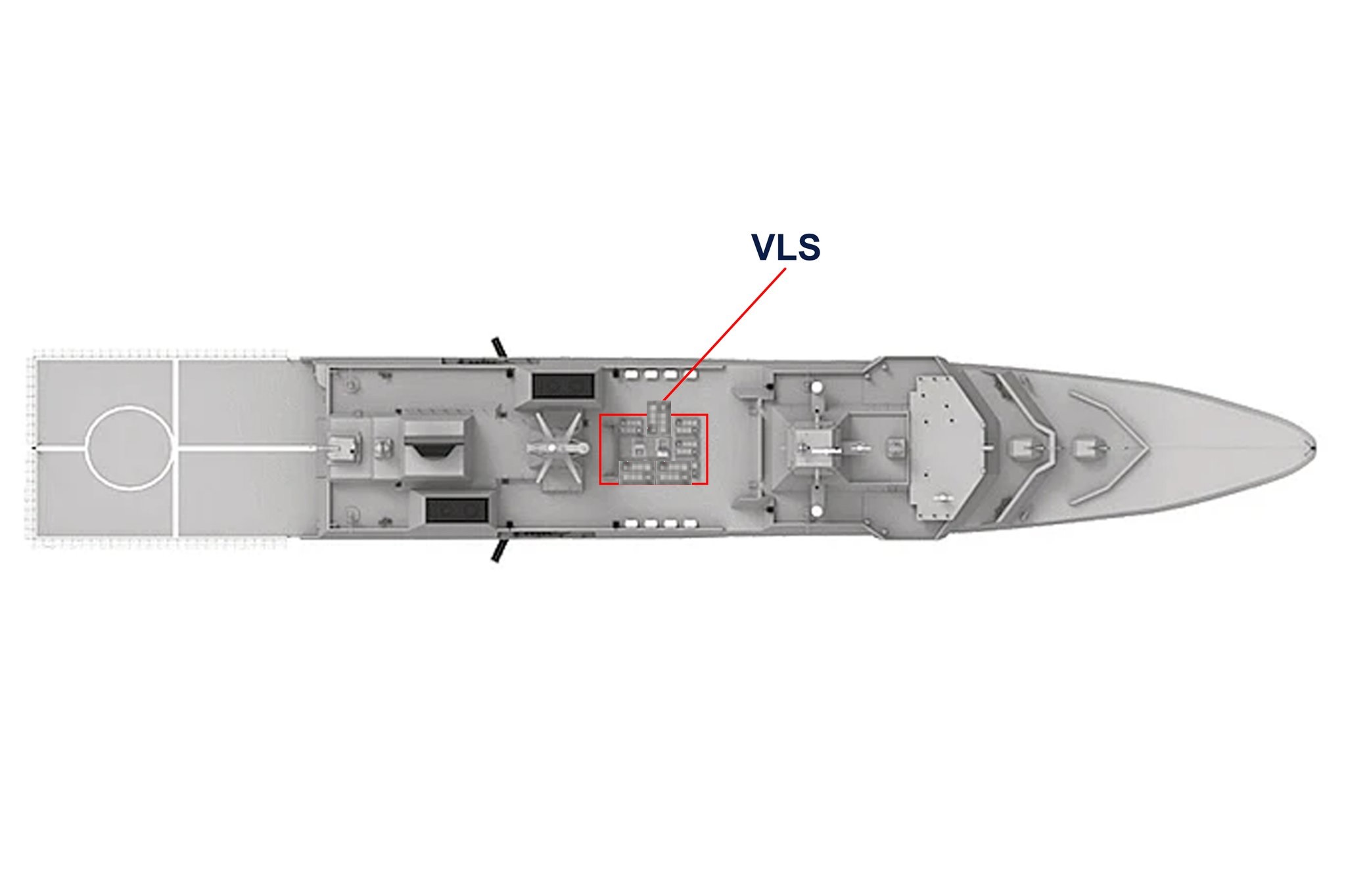 One aspect I worry the most is stability.Elevating deck is not simple as thought ( that actually means adding another deck) , Just my guess but they would rather leave the VLS standing out from the or extend side plates to shadow it to reduce the RCS.