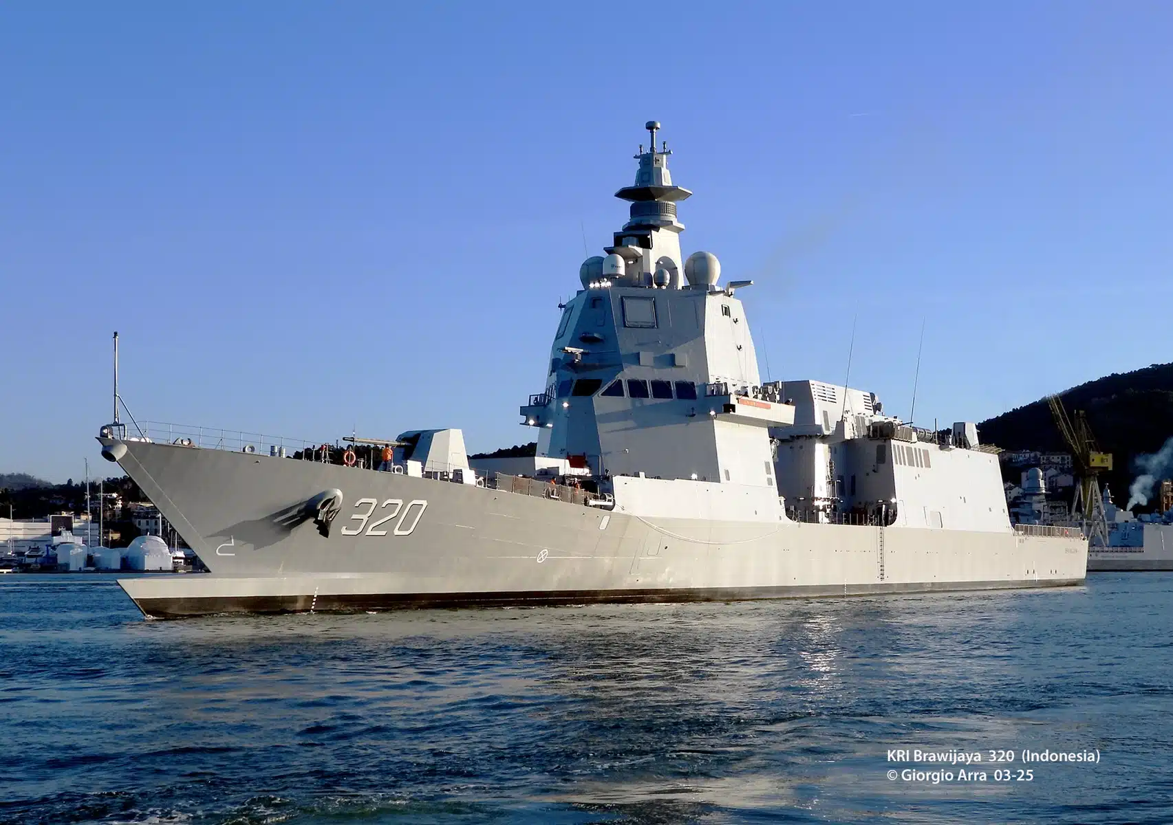 The first of two MPCS (Multipurpose Combat Ship / PPA) vessels sold by Fincantieri to the Indonesian Navy (TNI AL), KRI Brawijaya (320), is conducting the first sea-goings from the Italian shipbuilder’s Muggiano shipyard (La Spezia).