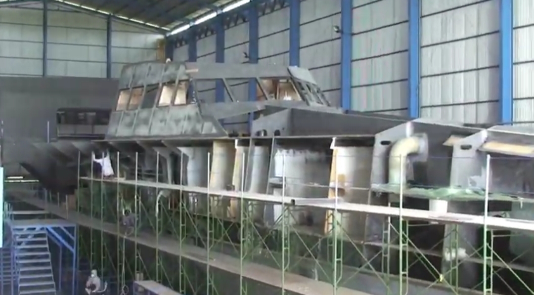 A screenshot of the Klewang Trimaran under construction from North Sea Boats video 2 years ago.