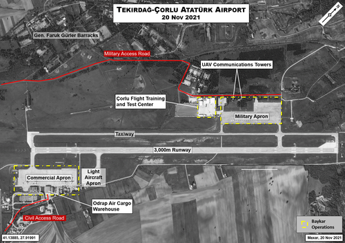Additional enlargement of the existing infrastructure at Çorlu is likely over the next two years, considering estimated increases in both Akıncı and TB2 production (see Production section in Part II). This may include additional support buildings and new apron space within the Çorlu Flight Training and Test Center. It is also possible that new facilities will be constructed along the military apron. Any construction at either location is likely to take place on land associated with the Gen. Faruk Gürler Barracks.