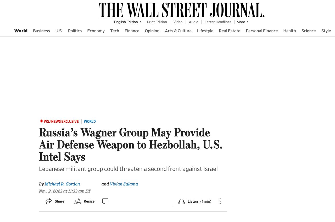 Wagner PMC may transfer the Pantsir-S1 air defense system to the Lebanese Hezbollah - WSJ, citing US intelligence.