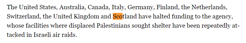It has its own government, laws and budget which it gives aid to UN orgs from. UK gov can cut off aid, while Scot gov may not. Scotland being its own country is 1 referandum away anyhow.