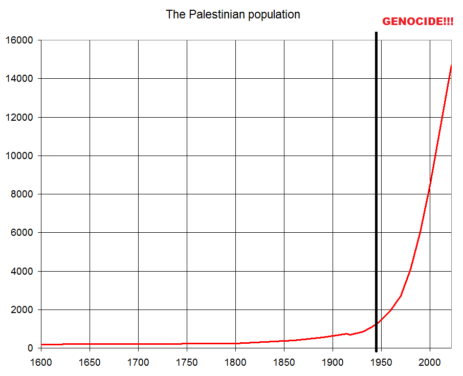 Palestinians went from making up 40% of Israels population down to 20%. Your logic follows the line of Germans counting the number of jews they put into concentration camps and going "Hey look, the number keeps going up so we arent actually killing anyone".