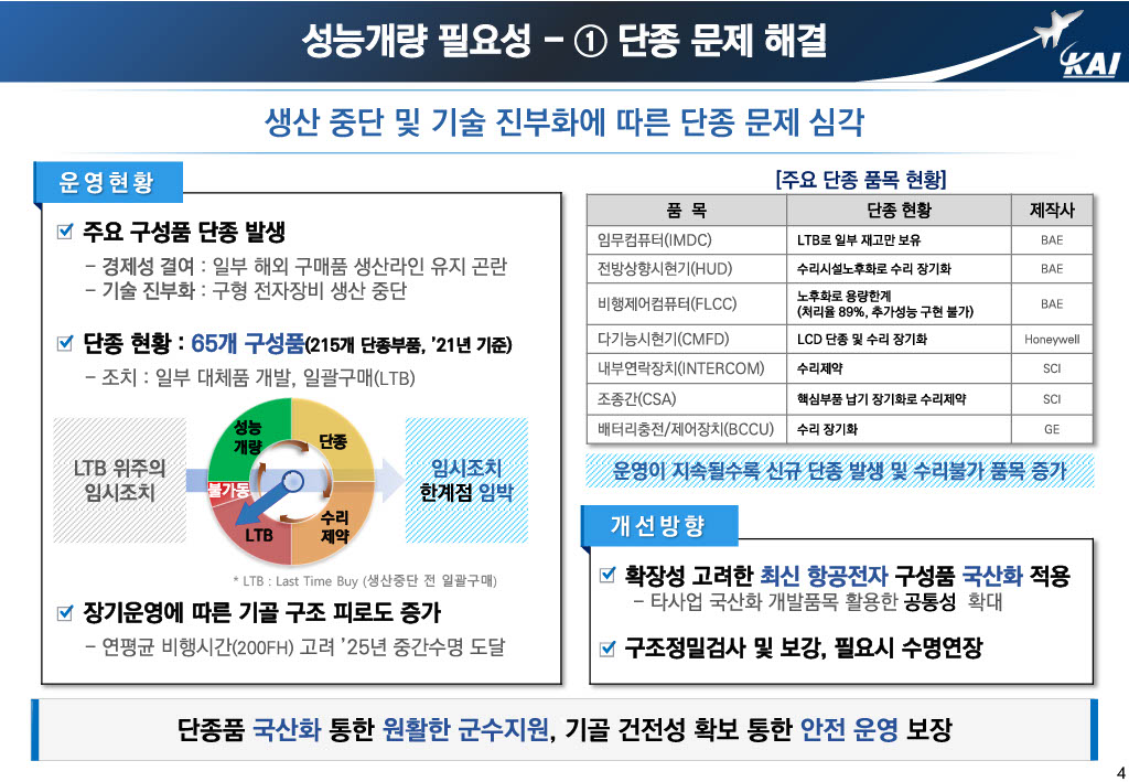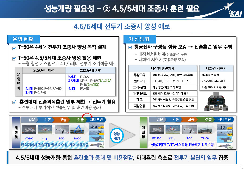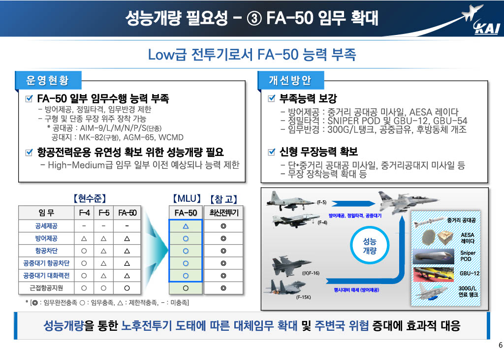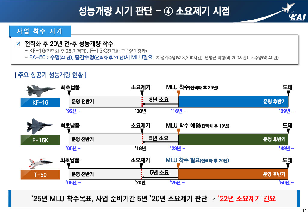 This is the part that points out that overseas countries legislate the performance improvement cycle of the aircraft in operation and start the business when that time is reached, while Korea does not. In the end, the KT-1 missed the time for MLU and had to promote new development, and the T/FA-50 still has a chance, so we should not miss this time and promote MLU.