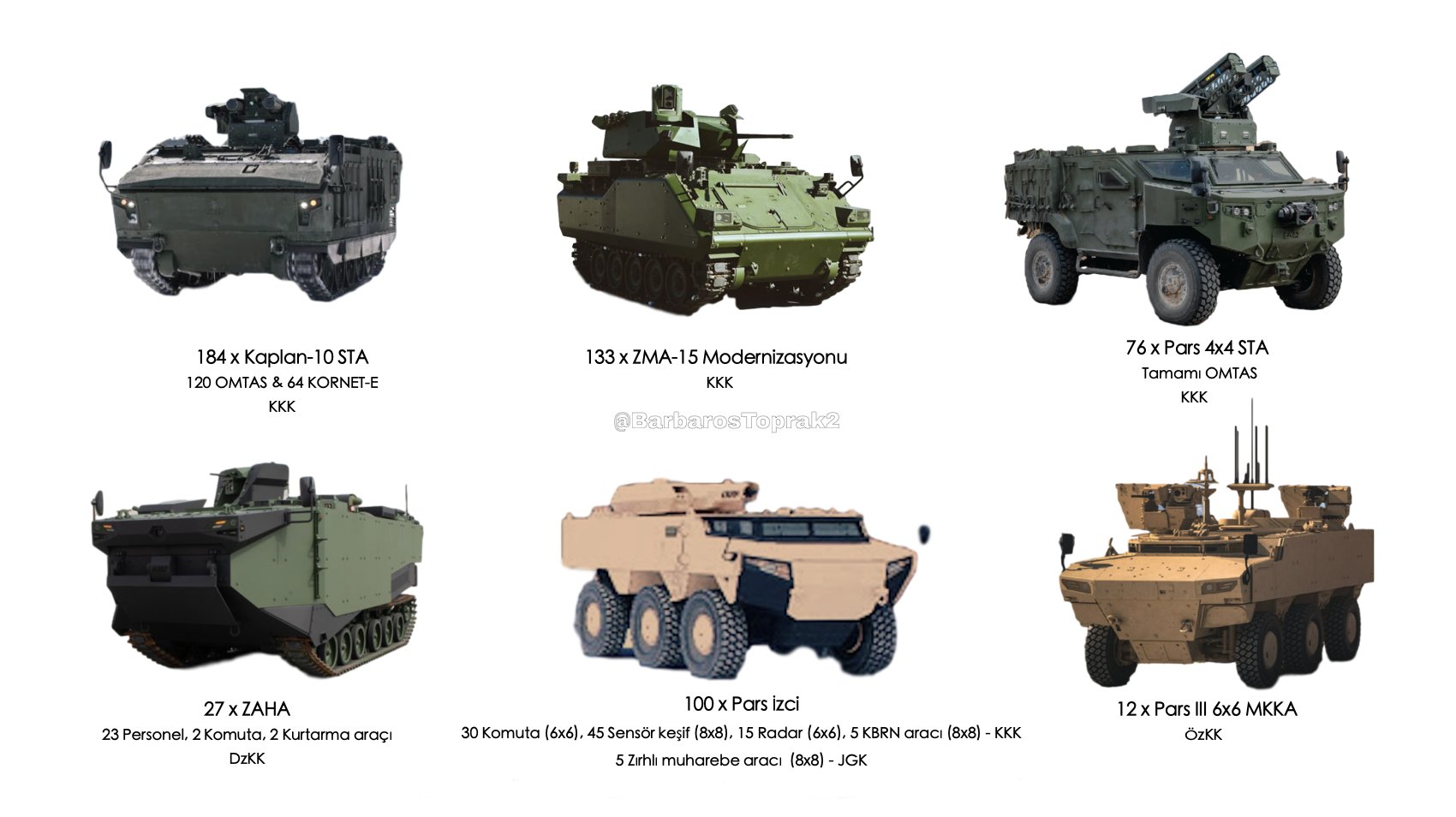 i dont tell exactly these vehicles, but if you count kirpi, kirpi2, Ejder yalchi, cobra, cobra 2 and so on, every year Tukey added at least 500-700 new armored vehicles that you can put antitank missiles or anything on top of it.. for example, Ejder yalchin has 3 ton more carring capacity after its full loaded, armored configuration. it could be switched to shoot air defense missiles more more mm bullets easily..Source?