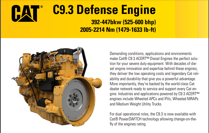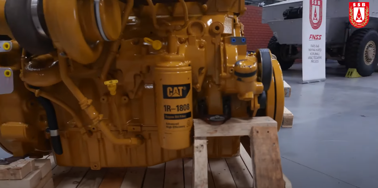 FNSS usually went with DEUTZ Engines, specifically 482 HP Engine but due to German Embargo likely selected the CAT C9.