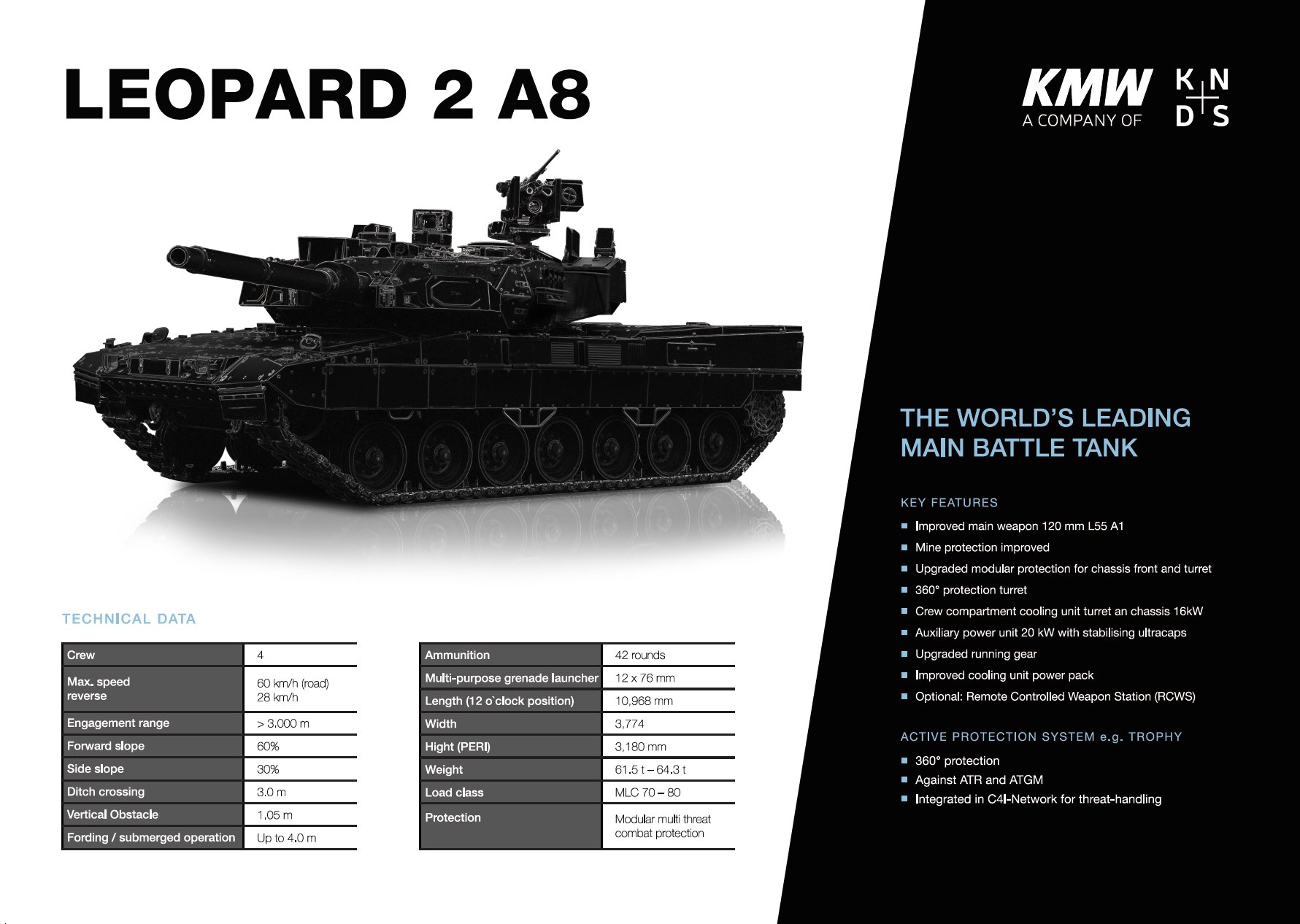 Lets talk firepower. The Leopard 2A7-A8 has the world most powerful tank gun the Rheinmetall RH120 L55A1.