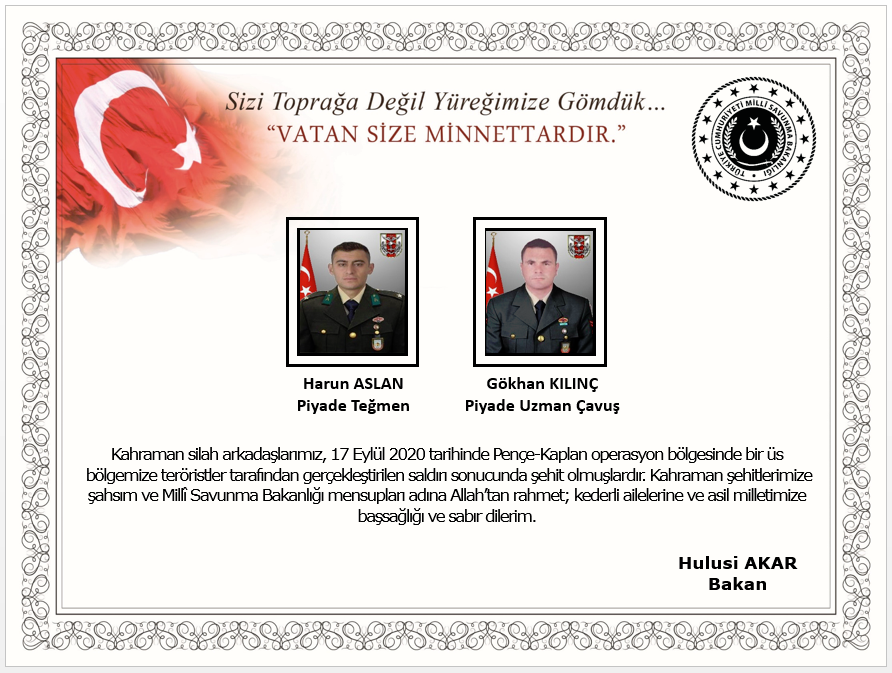 Unfortunately 2 soldiers were martyred in ATGM attack in Northern Iraq